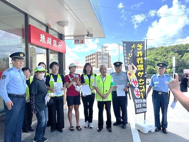 丸大(真玉橋店)、マックスバリュ(とよみ店)にて豊見城市商工会女性部協力のもと、特殊詐欺被害の防止対策などが書かれたチラシやティッシュなどを配って注意を呼びかけた